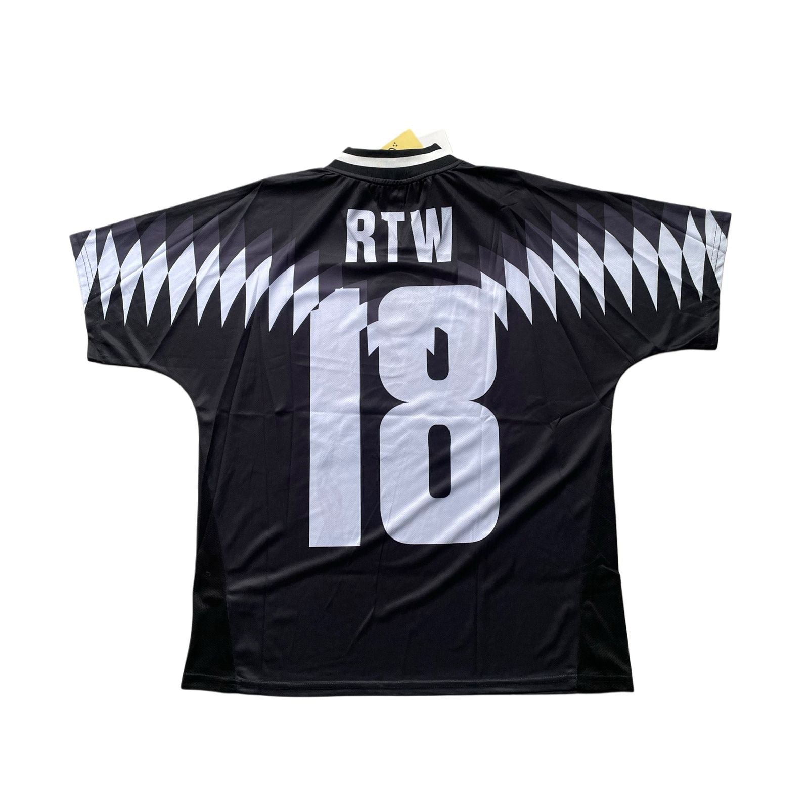• Número 18 en gran tamaño, inspirado en camisetas deportivas con estética retro.