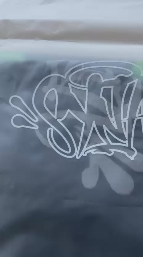 Beanie en color negro con estampado SYNA graffiti en tono gris.